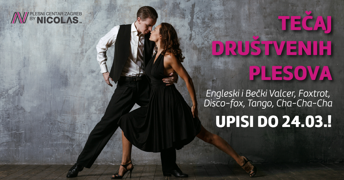 Engleski i Bečki Valcer, Foxtrot, Disco-fox, Tango, Cha-Cha-Cha Tečaj društvenih plesova namijenjen