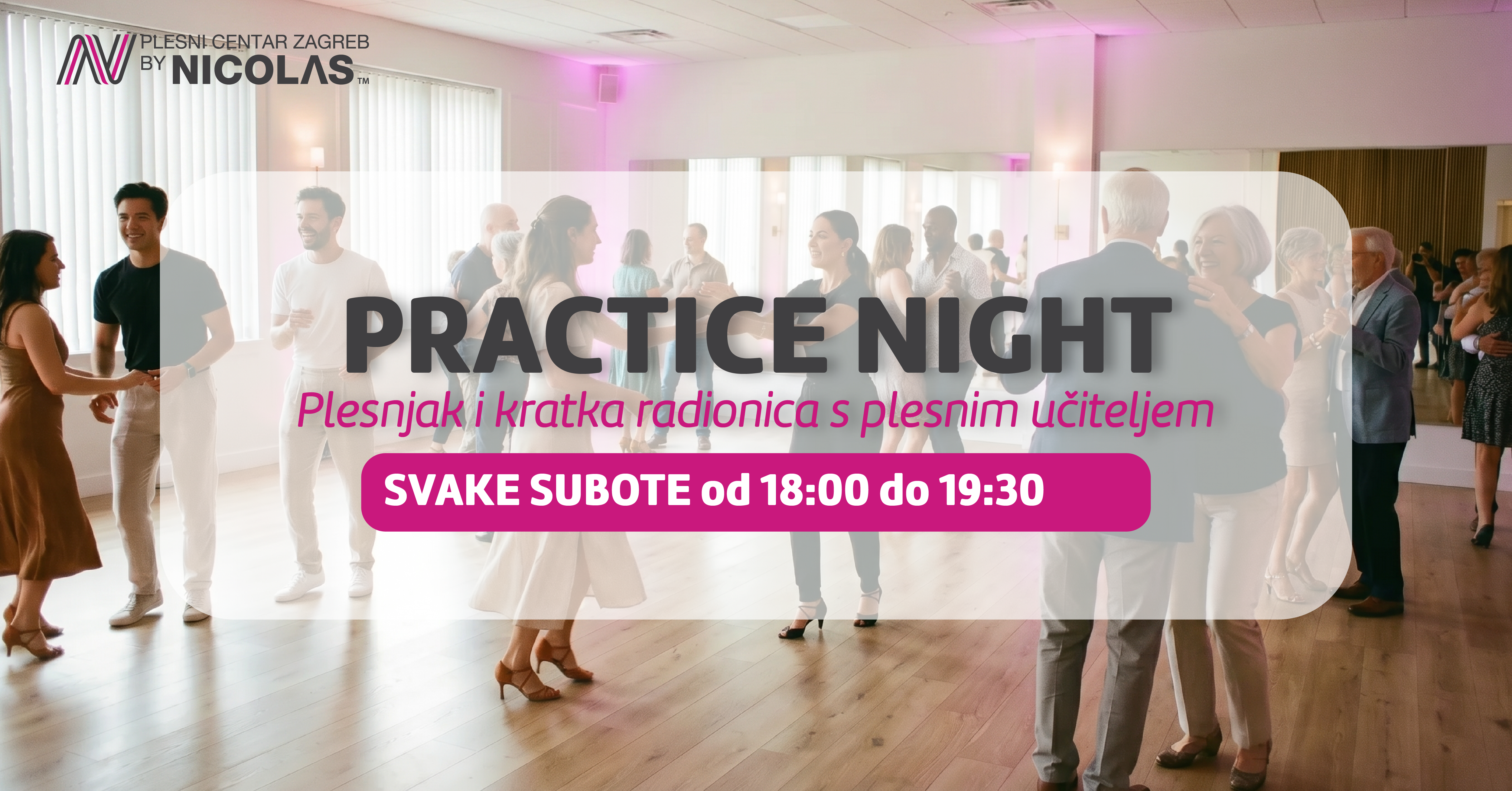 Practice Night je naš vođeni subotnji plesnjak koji se održava od 18:00 do 19:30 sati. Namijenjen